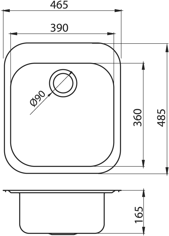 Vnější rozměr 46,5x48,5 cm a hloubka 16,5 cm. Kuchyňský dřez s přepadem. Součástí balení je sifon NSP 89. Prodloužená záruka 5 let.