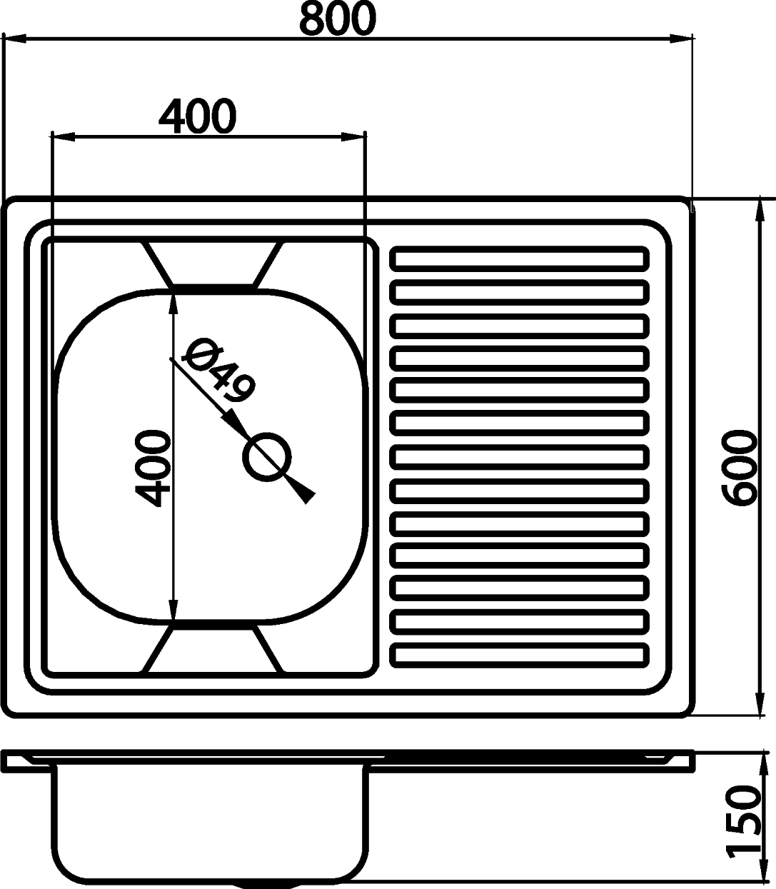 [DR40/50A] Dřez 40x50 s přepadem nerez