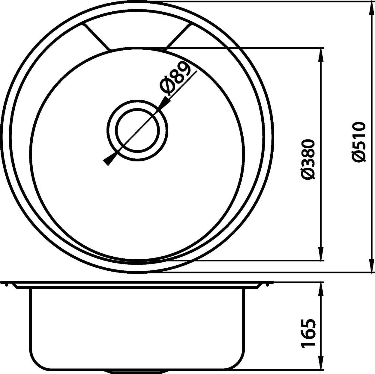 Vnější průměr 51cm a hloubka 16,5 cm. Kulatý kuchyňský dřez s přepadem. Součástí balení je sifon NSP 89. Prodloužená záruka 5 let.
