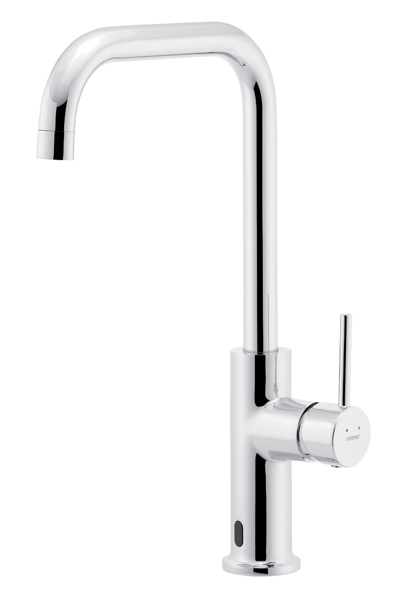Objevte Ferro Distanza, kuchyňskou baterii nové generace. Bezdotykový senzor pohybu spustí vodu pouhým gestem – a přitom můžete stále používat klasickou páku pro přesné nastavení průtoku a teploty.