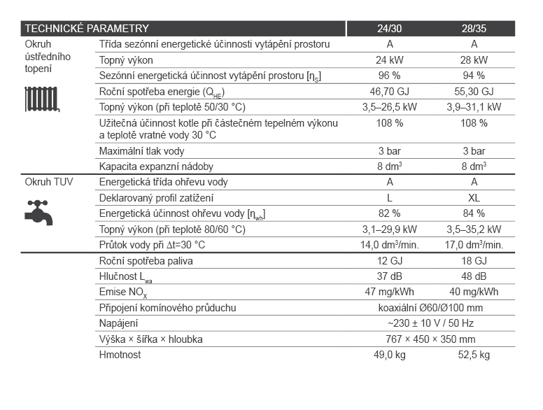 dodatečný systém odhlučnění založený na moderních zvuk pohlcujících materiálech umožňuje tichý provoz – hladina akustického hluku pouze 37 dB (týká se kotlů 24, 28, 24/30 kW)