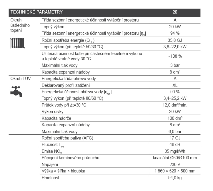 spolehlivá příprava teplé vody díky vestavěnému účinnému zásobníku o objemu 100 litrů