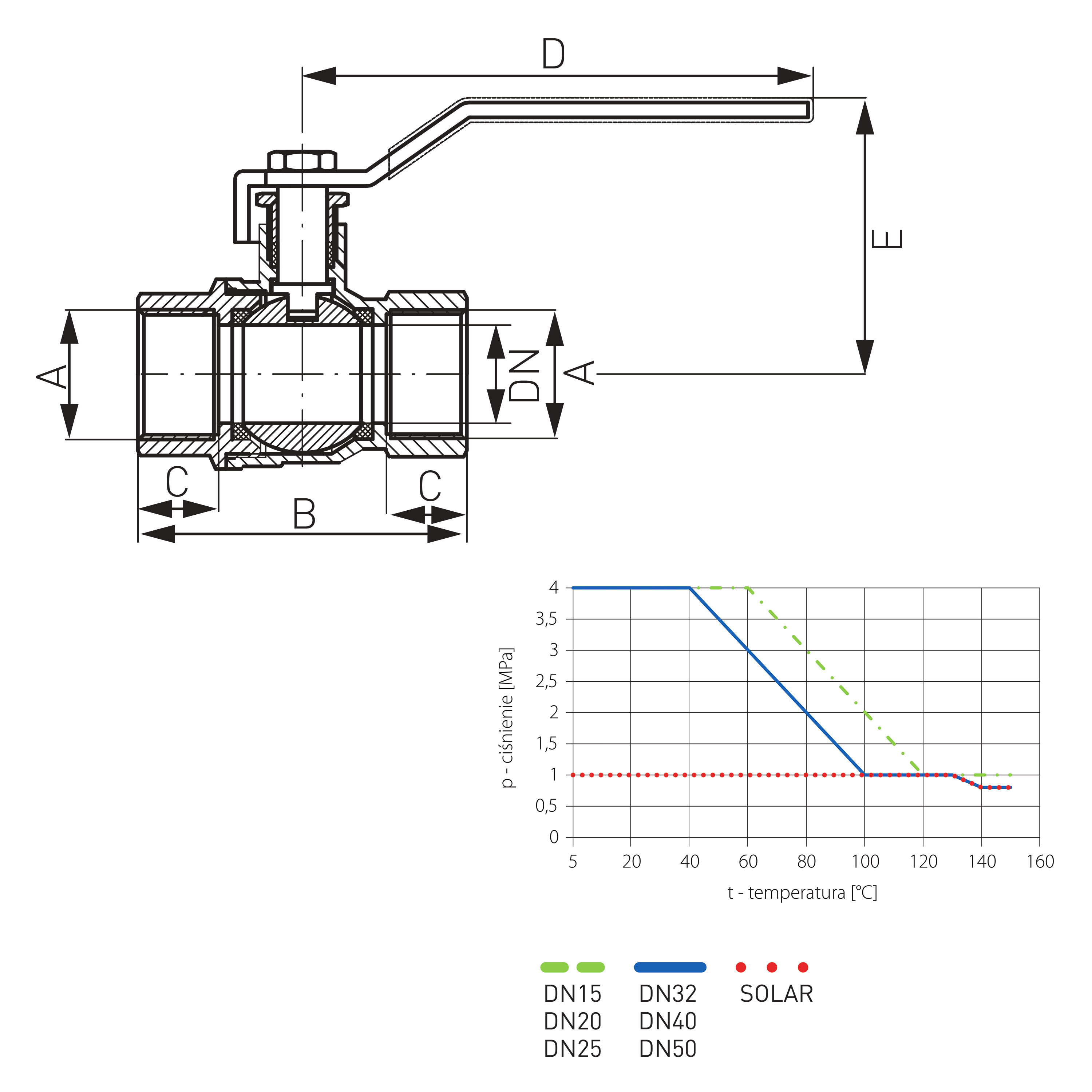 Materiál tělesa a koule: mosaz CW617N PN-EN 12164