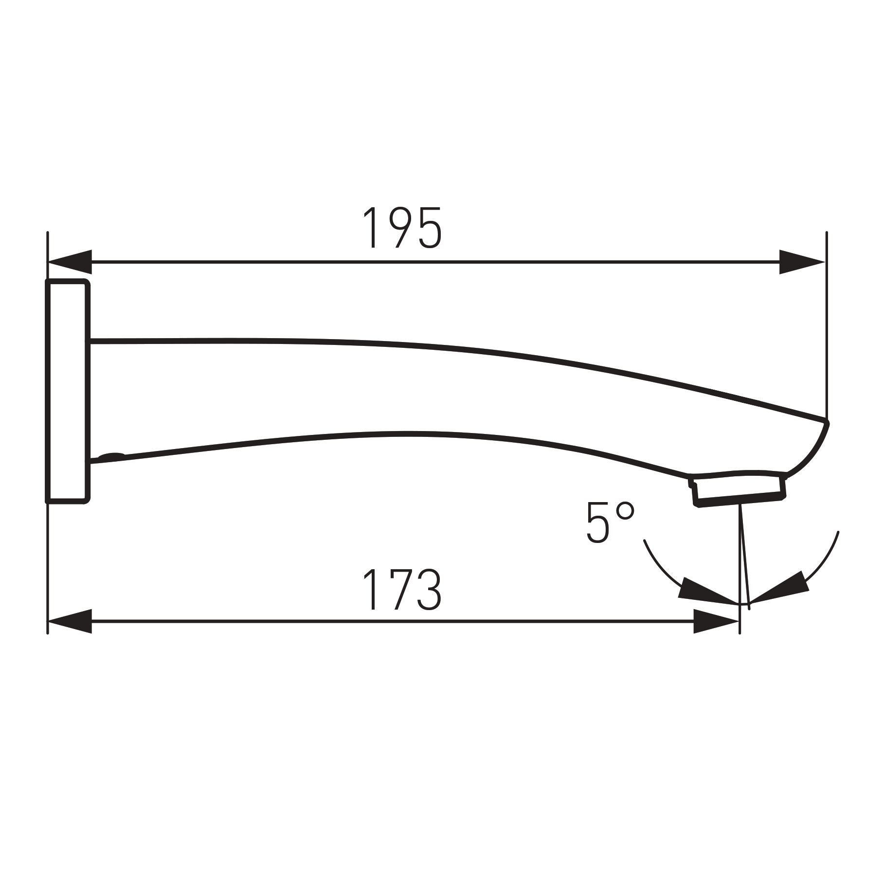 Délka výtokového ramínka 173 mm. Přípojení 1/2" vnitřní závit