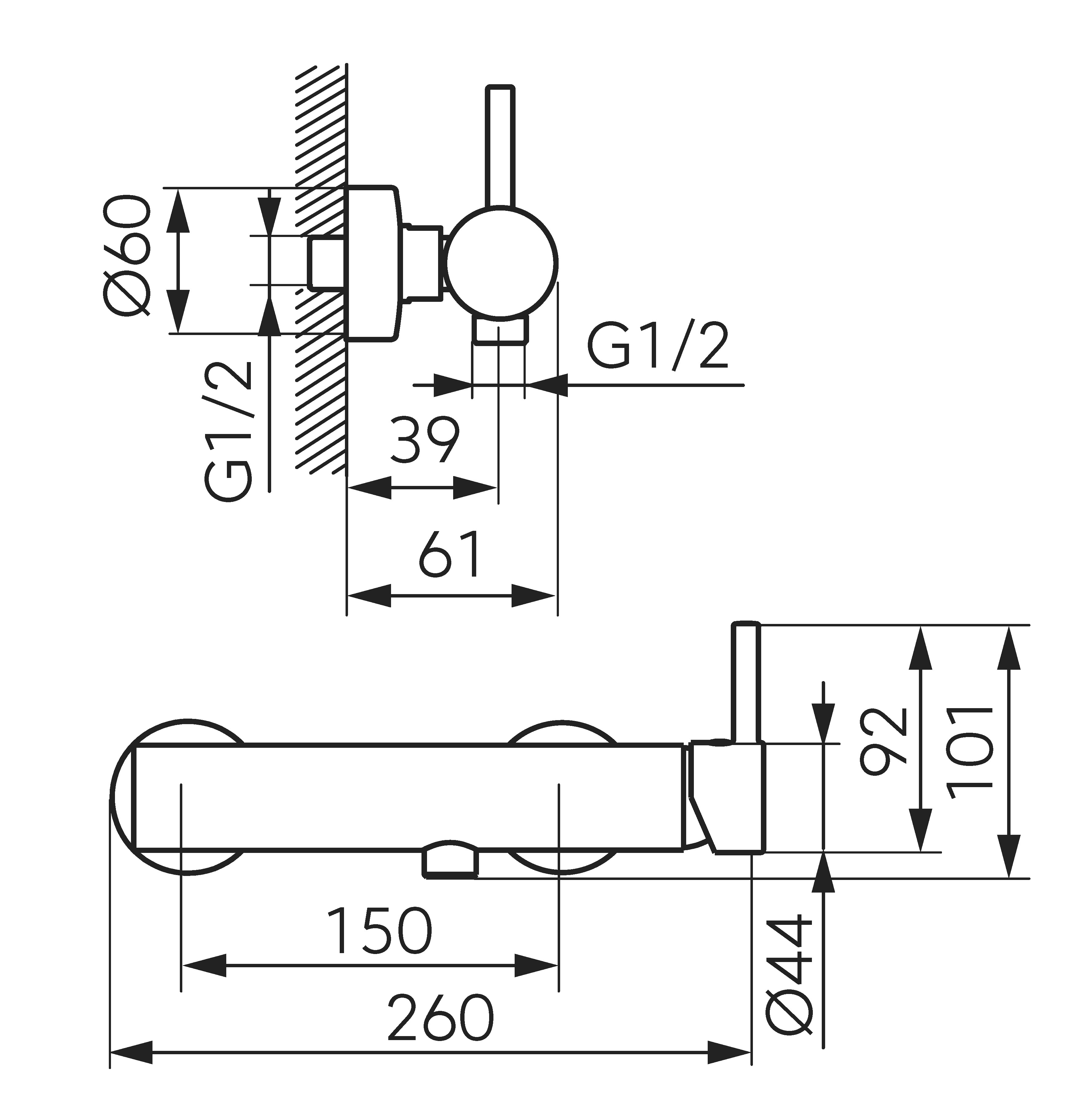 [92064/1,0] Sprchová baterie bez příslušenství 100 mm Titania Iris chrom