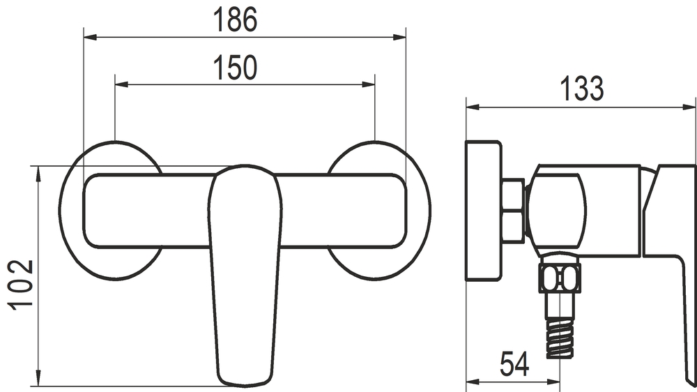 Kvalitní a odolná keramická kartuše KEROX 35 mm s prodlouženou zárukou 7 let. Prvotřídní chromové provedení. Sprchová nástěnná baterie s roztečí 150 mm. Součástí balení je plastová flexibilní sprchová hadice délky 150 cm s Anti-twist proti překroucení, otočný držák sprchy a úsporná 3-polohová ruční sprcha.
