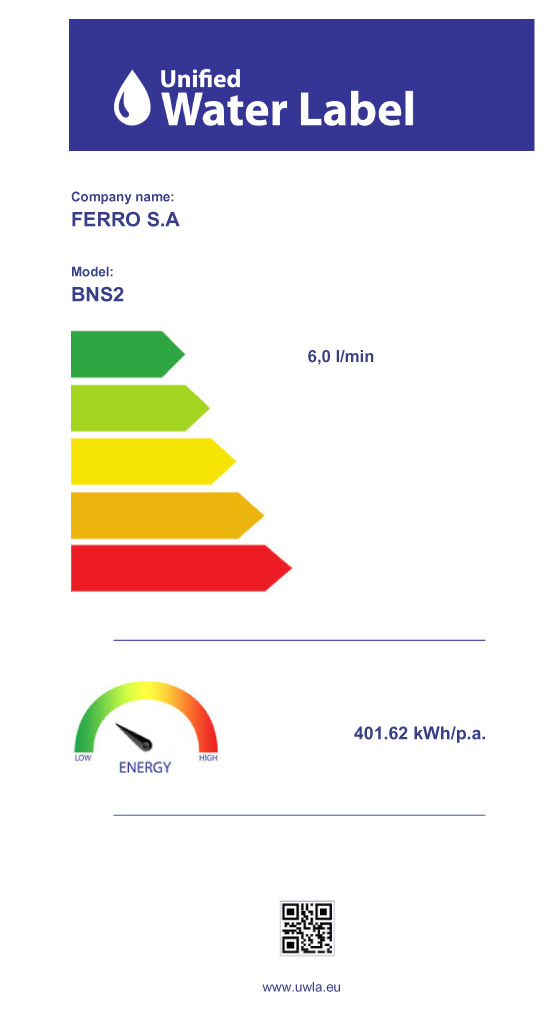 Umyvadlová baterie Ferro Nostris Chrom je vybavena novým typem úsporného aerátoru s průtokem jen 6 l/min., vyvinutým podle aktuálních standardů pro moderní stavební projekty a veřejné investice. Nese také certifikát UWLA, který potvrzuje šetrnost k vodě i energiím.