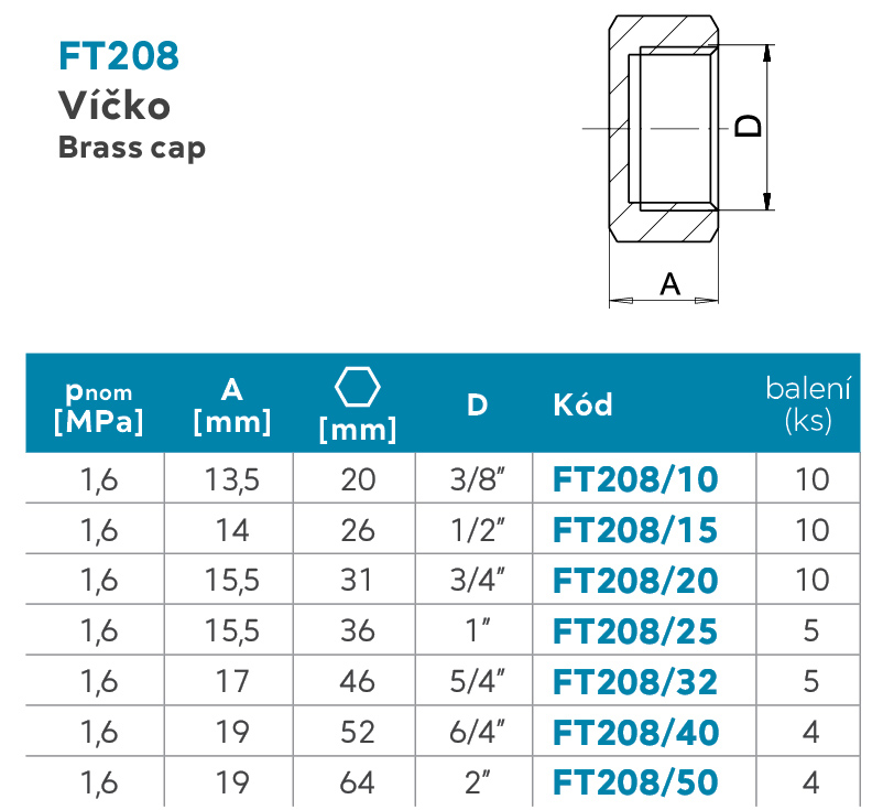 od 17 Kč Zátka - šestihran Možnosti provedení (8) Vyberte variantu 1/4", [FT207/8] (17 Kč) 1", [FT207/25] (85 Kč) 1/2", [FT207/15] (34 Kč) 2", [FT207/50] (298 Kč) 3/4", [FT207/20] (45 Kč) 3/8", [FT207/10] (25 Kč) 6/4", [FT207/40] (171 Kč) 5/4", [FT207/32] (149 Kč)